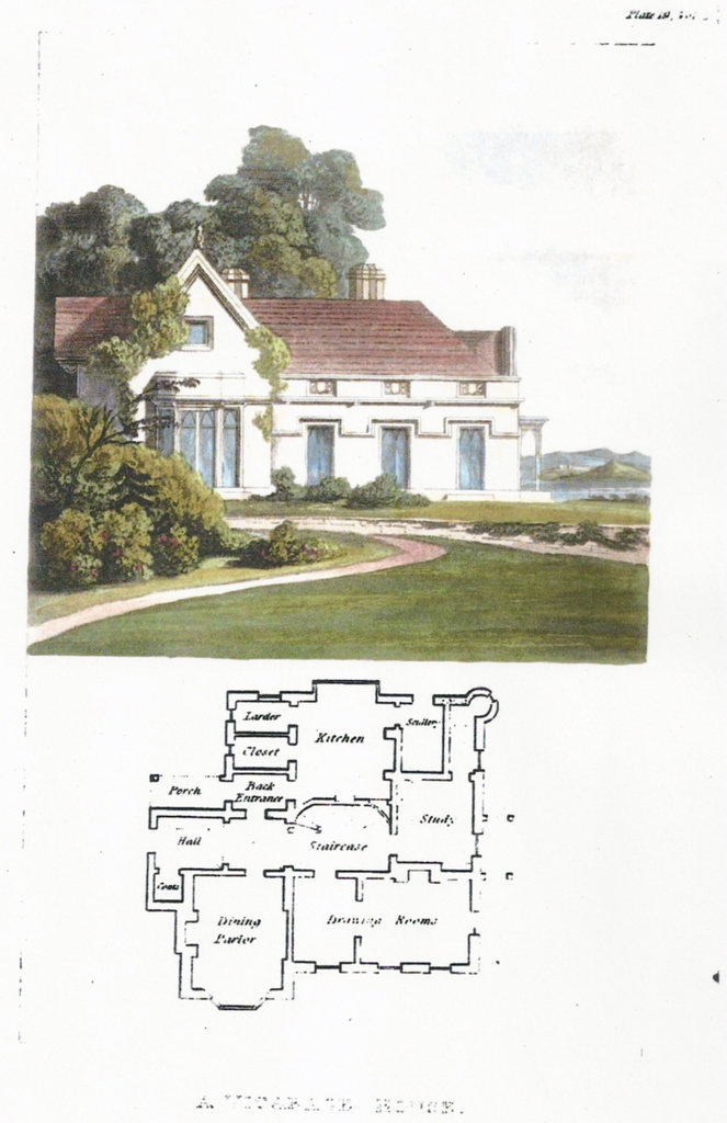 Excellent! The asymmetry of the house (both plan and facade), together with the emphasis on 'rural and romantic' scenery, show the influence of the Picturesque movement, presumably. The prose style made me smile, too.